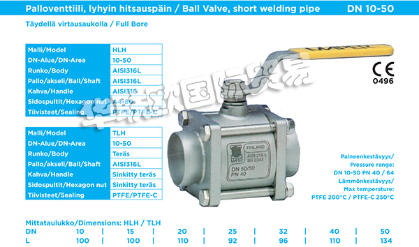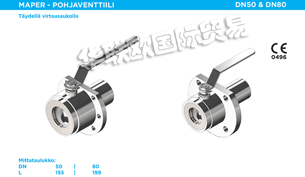 MAPER OY生產(chǎn)用于工業(yè)應(yīng)用的高品質(zhì)三段式球閥。MAPER閥門適用于需要高流量和緊密關(guān)閉的應(yīng)用場合。MAPER閥門是需要最高可靠性,功能性和可互換性的應(yīng)用的理想選擇。MAPER閥門廣泛應(yīng)用于造紙,食品,釀造,能源等領(lǐng)域。MAPER閥門主要材質(zhì)有不銹鋼,碳鋼,鋁合金等。