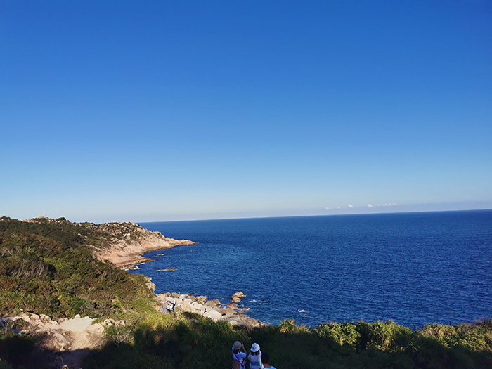 稍作休息后,下午3點(diǎn)多,我們游覽了觀景臺(tái)。這里三面環(huán)海,風(fēng)景如畫(huà)。惠東的雙月灣,由兩片半月形灣畔形成,而這一壯闊美景,只有登頂大星山的觀景臺(tái)才能看到。駐足在雙月灣觀景臺(tái)的最前端,極目遠(yuǎn)眺,藍(lán)天、白云、大海,水天相接,令人心曠神怡。