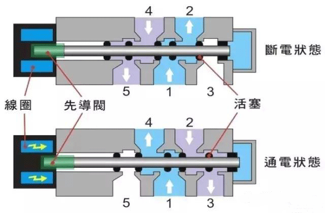 四.二位五通GSR電磁閥原理圖解