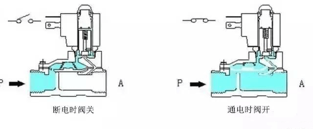 原理:常閉型通電時(shí),電磁線圈產(chǎn)生電磁力把敞開件從閥座上提起,閥門打開;斷電時(shí),電磁力消失,彈簧把敞開件壓在閥座上,閥門敞開。(常開型與此相反)