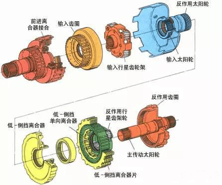 行星齒輪變速器是由行星齒輪機構及離合器、制動器和單向離合器等執行元件組成。行星齒輪機構通常由多個行星排組成.行星排的多少與檔數的多少有關。