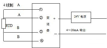熱電阻溫度變送器是由基準(zhǔn)單元、R/V轉(zhuǎn)換單元、線(xiàn)性電路、反接保護(hù)、限流保護(hù)、V/I轉(zhuǎn)換單元等組成。測(cè)溫?zé)犭娮栊盘?hào)轉(zhuǎn)換放大后,再由線(xiàn)性電路對(duì)溫度與電阻的非線(xiàn)性關(guān)系進(jìn)行補(bǔ)償,經(jīng)V/I轉(zhuǎn)換電路后輸出一個(gè)與被測(cè)溫度成線(xiàn)性關(guān)系的4~20mA的恒流信號(hào)。
