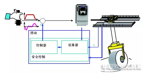 防搖擺控制是利用鐘擺原理,通過修改發(fā)給電氣控制系統(tǒng)的速度命令信號而連續(xù)限制擺動。通過檢查吊鉤的起升高度來計算擺動的角度,然后通過給定的加速度和減速來抵消擺角。當(dāng)物體在達到設(shè)定的速度或者停止擺動很小或者基本沒有擺動。