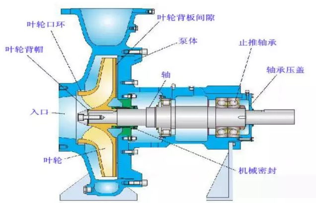 由若干個彎曲的葉片組成的葉輪置于具有蝸殼通道的泵殼之內。