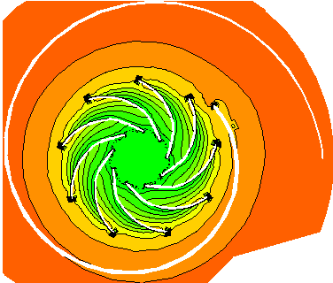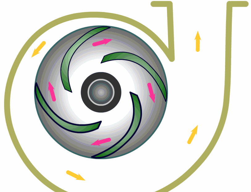 在蝸形泵殼中由于流道的不斷擴大,液體的流速減慢,使大部分動能轉化為壓力能。最后液體以較高的靜壓強從排出口流入排出管道。