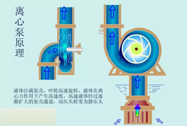 泵內的液體被拋出后,葉輪的中心形成了真空,在液面壓強(大氣壓)與泵內壓力(負壓)的壓差作用下,液體便經吸入管路進入泵內,填補了被排除液體的位置。