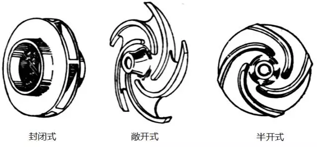 (2)開式葉輪在葉片兩側都無蓋板,適用于輸送含有較大量懸浮物的液體,效率較低,輸送的液體壓力也不高。