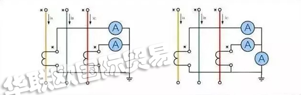 兩種相位差電流接線形式的電流互感器接線圖,如上圖所示。