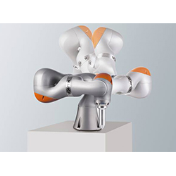 未來的工廠要求機動和靈活。靜態的生產線為下一代機器人讓路:智能的移動機器人平臺單元登上舞臺。移動機器人在空間內自主移動、群體作業并為工業提供絕對的靈活性。這點在內部物流領域中尤其重要。為此,KUKA提供從可手動移動式到自主作業式解決方案的多種機動性機器人產品系列。KUKA移動機器人與人一起攜手合作并以毫米級精度在工件上作業。此外,完全自主作業式移動機器人平臺不需要電感線圈、地面標記或磁鐵。他們以KUKA的移動機器人產品系列來宣告下一個信息物理生產領域時代的到來。這款iiwa輕型機器人(第一個i代表智能,第二個i代表工業,w代表工作,a代表助手)符合對人機協作的所有要求。人與機器在狹窄的空間內可靠地合作。這是通過接觸識別技術實現的,可編程的柔韌性確保在對工件的加工中達到高精度。LBR iiwa有兩種負載等級可供選擇:7公斤級和14公斤級LBR iiwa有七根軸。所有的軸都配有靈敏的集成式關節力矩傳感器。