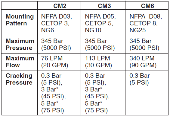 CM系列單向閥提供一個完整的,全面檢查壓力'P'端口,'A'口'B口的'三通閥,或油箱換向閥的'T'端口,閥體采用不銹鋼制造,內部硬化鋼組件,提供額外的強度和耐久性,使用壽命更長,大型內部流動路徑允許在低壓大流量下降。