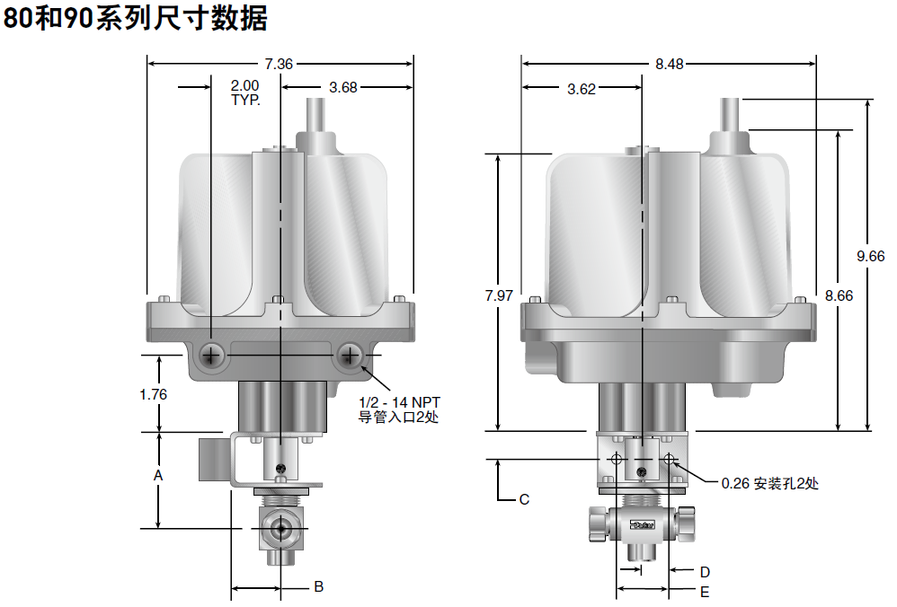 導電管接口: 3/4" NPT(包含3/4"轉為1/2"的接口形式)
