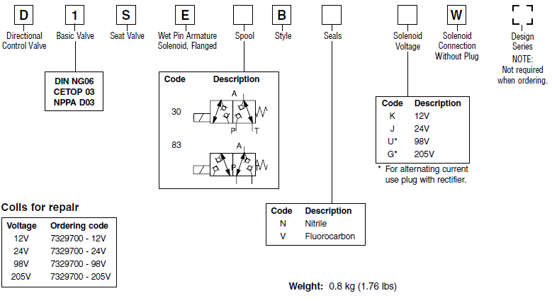 PARKER換向閥D1SE系列可以與標準的DIN NG06,CETOP03和NFPA D03兼容。由于3/2路設計,端口A是無論以P連接或在水箱排出。該中立的立場(電磁閥未激活)通過復位彈簧自動拍攝。這個位置一直保持到電磁線圈通電。閥體具有全鋼結構設計,重要的內(nèi)部功能零件硬化,閥芯和閥座耐磨。閥門的提升包括激活桿和電樞,當電磁位于加壓油室的連接閥門時,提升設計就不會有微分區(qū)軸向操作方向(開啟,關閉)。因此,即使在壓力下,它的靜態(tài)壓力平衡可以使閥門在兩個流動方向下切換。