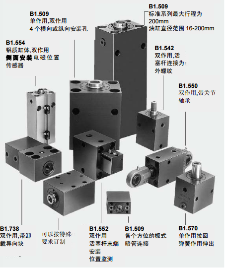 1、 壓力范圍大活塞 φ16mm 100bar 2kN 活塞 φ200mm 500bar 1570kN